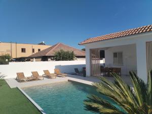 Cette villa comporte 2 chambres, 1 salle de bains, du linge de lit, des serviettes, une télévision à écran plat, un coin repas, une cuisine entièrement équipée et un patio offrant une vue sur la piscine. Des serviettes et du linge de lit moyennant des frais supplémentaires.