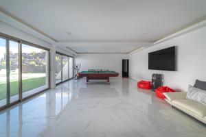 Cette villa comporte 7 chambres, 8 salles de bains, du linge de lit, des serviettes, une télévision à écran plat avec les chaînes du satellite, un coin repas, une cuisine entièrement équipée et une terrasse offrant une vue sur la piscine.