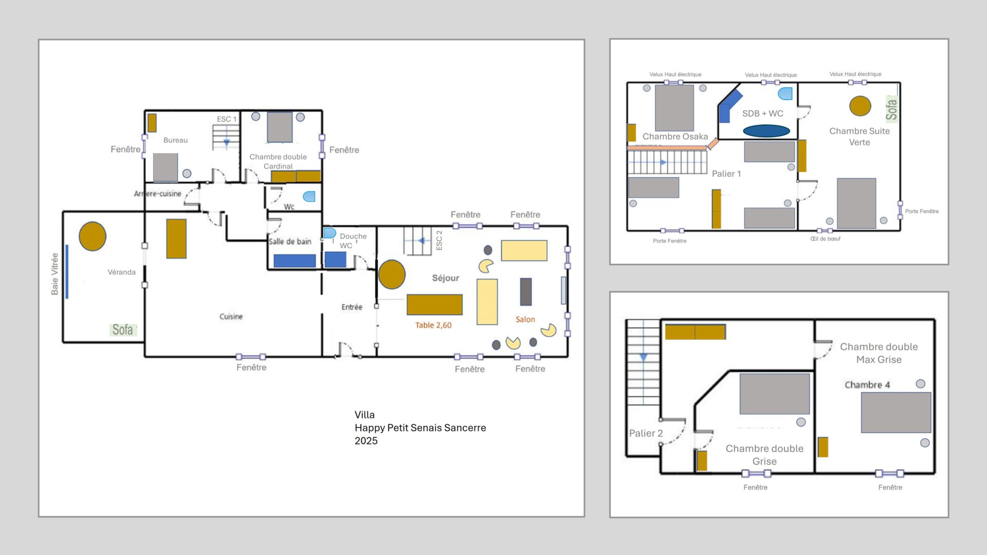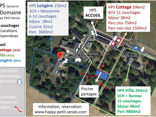 5 chambres, Bureau, Dortoir. 3SDB, 3 WC (6 lit double, 4 lit simple)