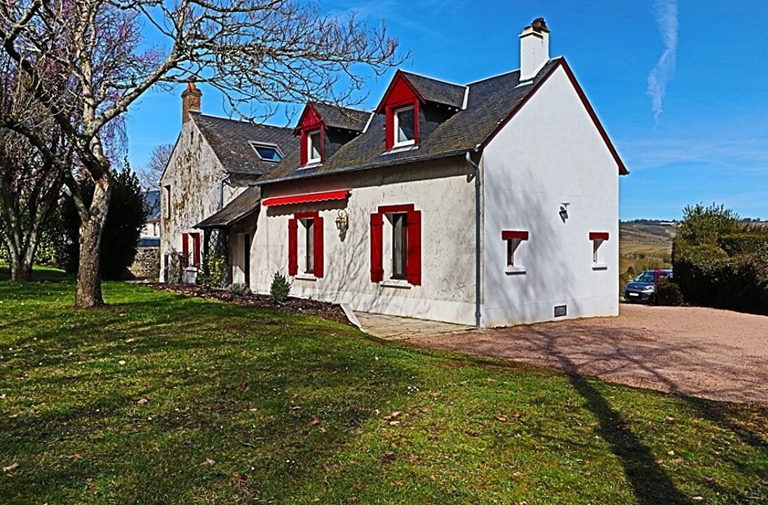 Dans un village vigneron de Sancerre, calme absolu sans être isolés, position dominante avec vue spectaculaire sur les collines du vignoble pour cette propriété de caractère de 204 m² pour 15 personnes.