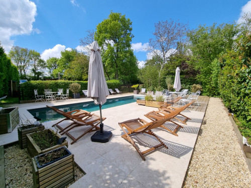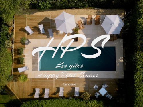 Accès à la piscine au sel chauffée partagée avec les 2 autres gites du domaine Happy HPS Sancerre, de mai à septembre.