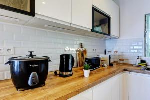 Cette villa avec climatisation se compose de 4 chambres, d'un salon, d'une cuisine entièrement équipée avec un réfrigérateur et une bouilloire, ainsi que de 4 salles de bains avec une douche et des articles de toilette gratuits. Des serviettes et du linge de lit sont à votre disposition.