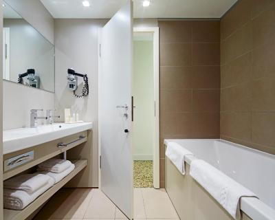 Les chambres modernes de cet hôtel d'Amnéville sont équipées de la climatisation, d'une connexion Wi-Fi gratuite, d'une télévision et d'une salle de bains privative. L'établissement comprend 3 chambres pour personnes à mobilité réduite disponibles sur demande.