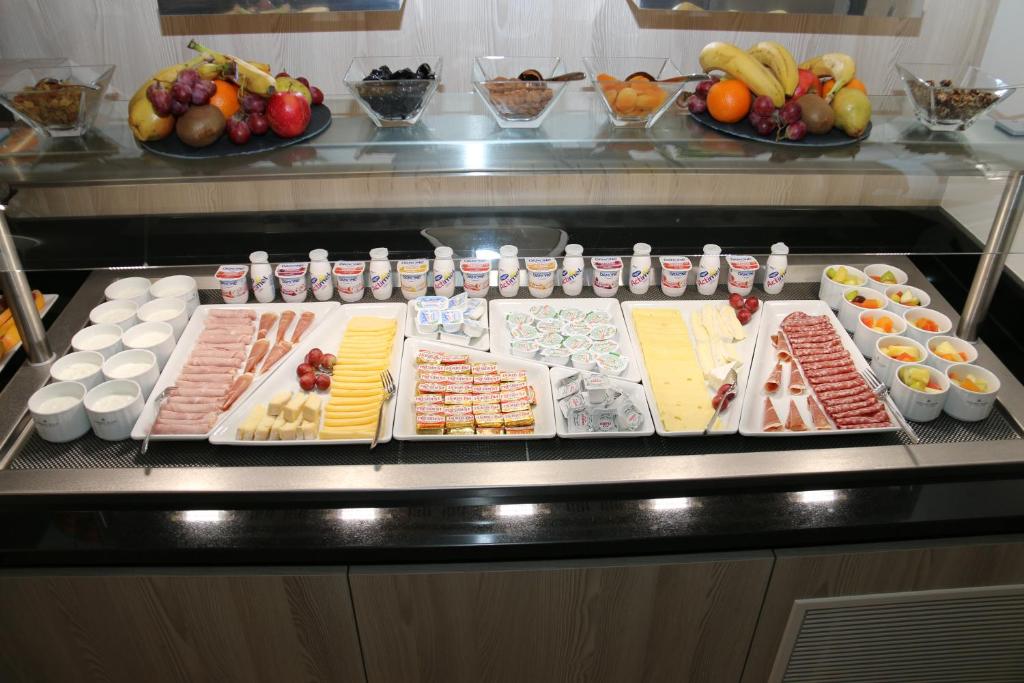 La salle du petit-déjeuner a été rénovée pendant l'hiver 2017 et est décorée dans un élégant style baroque, avec des étoffes de velours pourpre et argent. Un petit-déjeuner complet est servi tous les matins. En été, vous pourrez vous détendre sur la terrasse et profiter d'un snack-bar au bord de la piscine.
