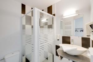 Cette chambre moderne dispose d'une télévision à écran plat, d'un téléphone ainsi que d'une salle de bains privative pourvue d'un sèche-cheveux et d'articles de toilette gratuits.