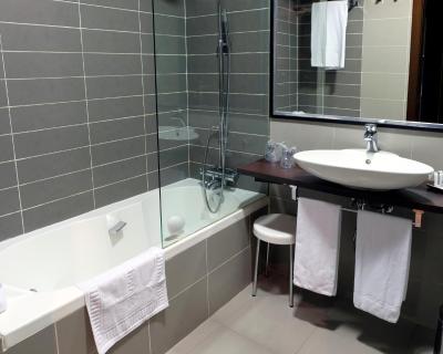 All rooms at the Hotel Asset Torrejón are soundproofed and have a flat-screen TV. They have elegant en suite bathrooms with varied amenities.