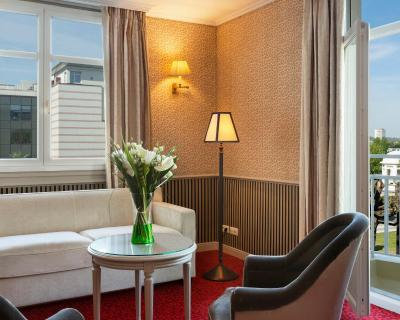 Située dans l'extension du Grand Hotel, cette chambre bénéficie d'un accès direct au spa ainsi que d’un accès par l’intérieur à la réception et au restaurant de l'hôtel.