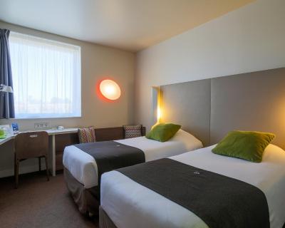 Présentant une décoration contemporaine, les chambres du Campanile Carcassonne Est-La Cité disposent de la climatisation, d'une télévision à écran plat et d'un plateau/bouilloire.