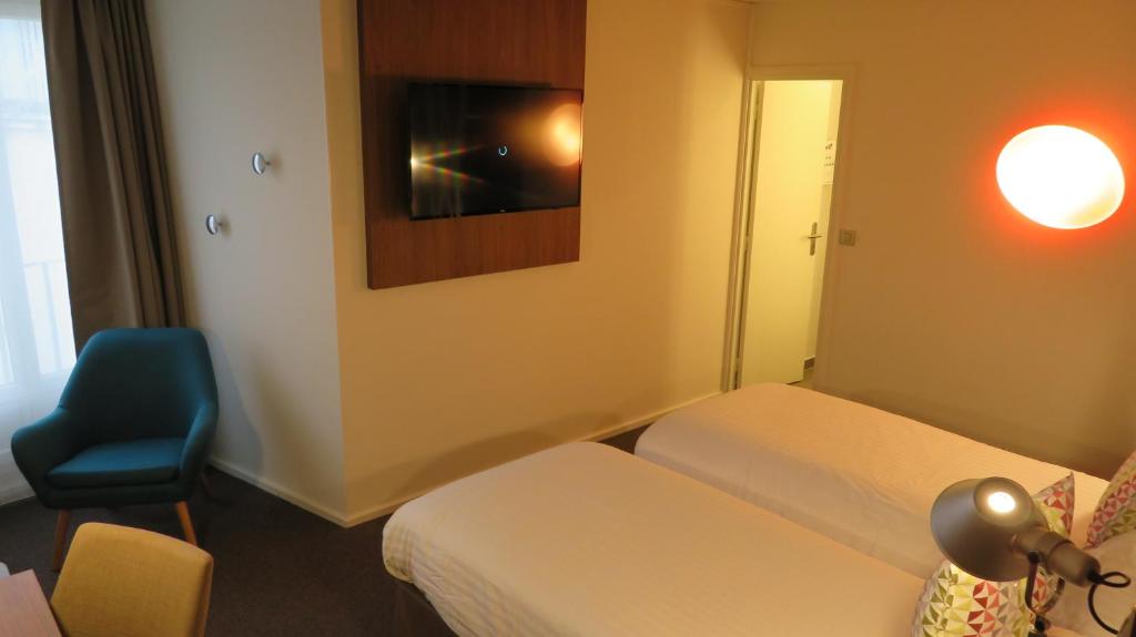 Un parking est disponible moyennant des frais supplémentaires. L’hôtel est situé dans le centre-ville de Chartres, à 100 mètres de la gare et à 1 heure de Paris. Vous trouverez de nombreux restaurants dans les environs.