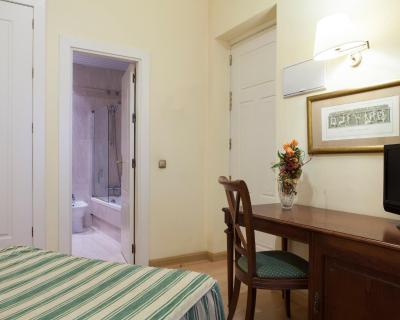 Les chambres de l'Hotel Cervantes sont dotées de parquet, de chauffage, d'une télévision par satellite, d'un coffre-fort et d'un minibar. Leur salle de bains privative est pourvue d'une baignoire, d'un sèche-cheveux et d'articles de toilette gratuits.