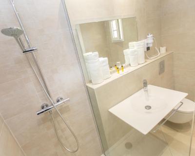 La salle de bains privative est pourvue d'une baignoire ou d'une douche et d'un sèche-cheveux.