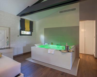 Une salle de sport équipée d'équipements professionnels et un espace spa avec 2 saunas et un spa.