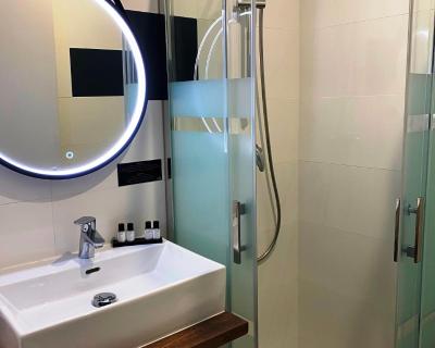 Toutes les chambres contemporaines disposent d'une télévision par satellite à écran plat, d'un bureau, d'un coffre-fort, de la climatisation, d'une armoire et d'une salle de bains privative avec douche.
