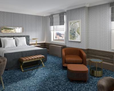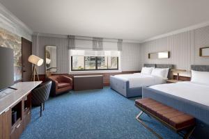 Every room at Hotel Cleveland Autograph Collection provides a 42-inch cable TV with satellite channels, a seating area with an oversized chair and a desk. A coffee maker is also included.
