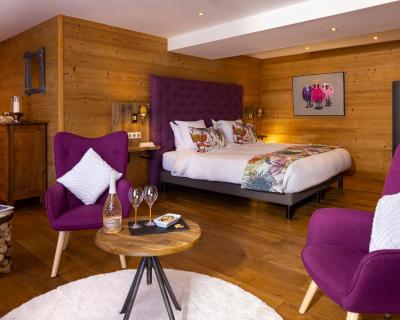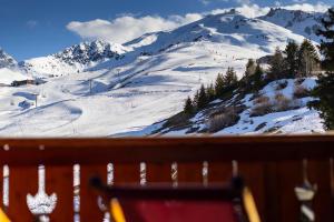 L'hôtel Courcheneige est situé au plus haut point de la station de ski de Courchevel, dans les Alpes françaises. Il propose un hébergement de style chalet avec vue sur les montagnes environnantes.