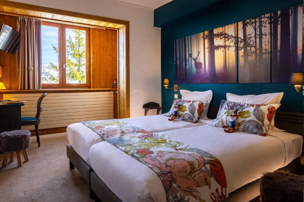 Chacune des chambres du Courcheneige dispose d'une télévision et d'une salle de bains privée avec carrelages en terre cuite et chauffe-serviette.