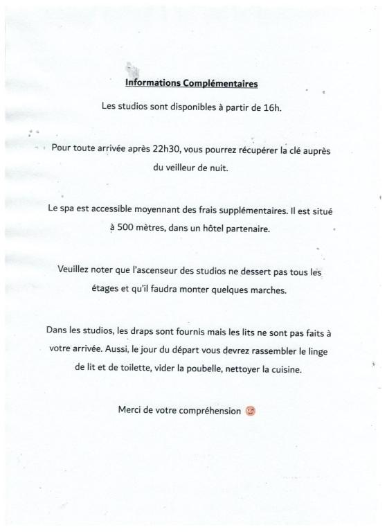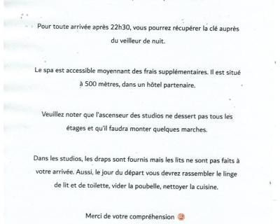 Pour le studio, veuillez noter que les draps sont fournis, mais que les lits doivent être faits à votre arrivée.