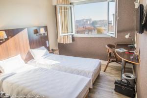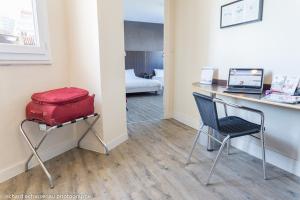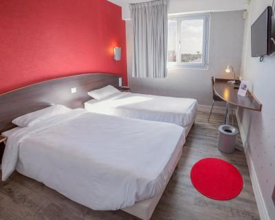 L'Hôtel de la Vendée dans le centre-ville de La Roche-sur-Yon vous offre tous les avantages d'être au cœur de la ville, de ses attractions touristiques et commerçantes, mais dans un quartier calme. Facile d'accès, il se trouve à 800 mètres de la gare SNCF et à 300 mètres de la place Napoléon. Il y a des places dans les rues adjacentes où vous pouvez garer votre véhicule et un parking public couvert est proche de l'établissement. Vous serez accueillis chaleureusement, également en anglais, par une équipe attentive. Notre établissement hôtelier, équipé d'un ascenseur, comprend 32 chambres non-fumeurs qui ont été rénovées avec un thème de couleur par étage. Ils sont modernes, confortables. Nous assurons la qualité de la literie. Chacune s'ouvre sur une salle de bain équipée et entretenue avec les mêmes exigences de propreté que pour l'ensemble de l'hôtel. Il est accessible à Internet, La connexion Wi-Fi est gratuite et chaque chambre dispose d'un écran plat recevant environ 25 chaînes. Nos clients d'affaires trouvent à l'Hôtel de Vendée (85) tous les services pour promouvoir leur repos et réduire leur budget. Le petit déjeuner copieux et varié, servi dans l'agréable salle à manger, vous donnera beaucoup d'énergie pour reprendre la route. Nous avons également de très bons restaurants à proximité à recommander. La Roche-sur-Yon en Pays de la Loire offre aux touristes de grandes découvertes culturelles grâce à son riche passé. La Ville a conçu plusieurs itinéraires pour vous montrer son histoire. Mais nous serons heureux de répondre à toutes vos questions du mieux que nous pouvons pour rendre votre séjour le plus agréable possible. Être parmi les Yonnais signifie aussi être à 40 minutes du Puy du Fou, avec ses spectacles colorés, et à 30 minutes de l'Océan. Bref, ce sont de bonnes vacances ou un séjour riche en perspective. A trente minutes de la côte (Les Sables-d'Olonne / La Tranche-sur-Mer), au cœur de la ville, dans le quartier calme du marché des Halles, et à 300 mètres de la place Napoléon, nos chambres vous offrent un confort moderne et chaleureux pour vos séjours d'affaires ou touristiques.