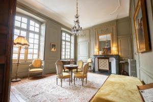 Toutes les chambres comprennent une salle de bains privative et une télévision. Certaines offrent une vue sur le jardin. Elles présentent des boiseries d'époque, une cheminée et de grandes portes-fenêtres.