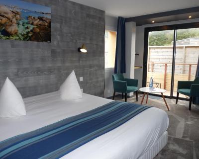 Les chambres de l'établissement disposent d'une télévision à écran plat, et certaines offrent une vue sur la côte de granit rose.