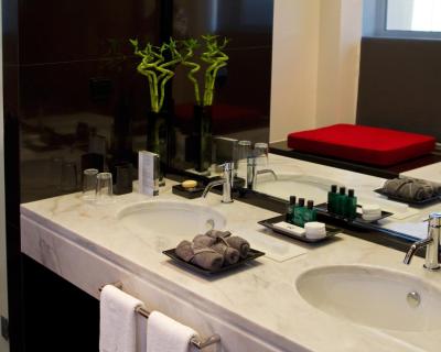 Les chambres de l'Hotel Dighton disposent d'un intérieur moderne agrémenté de meubles en bois sombre. Elles sont toutes pourvues d'un minibar, d'un bureau et d'une salle de bains privative.
