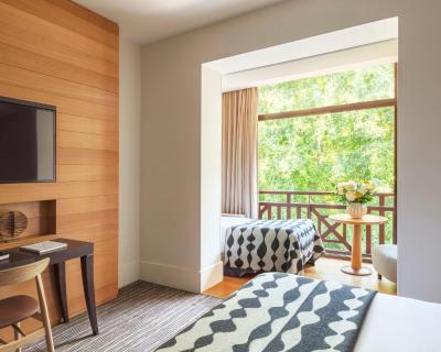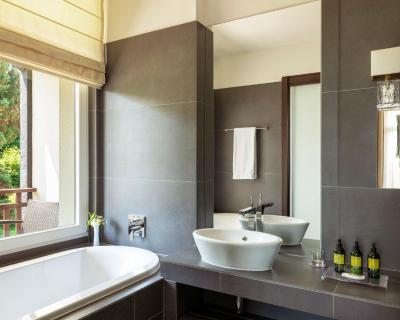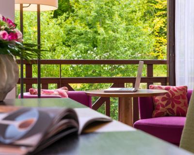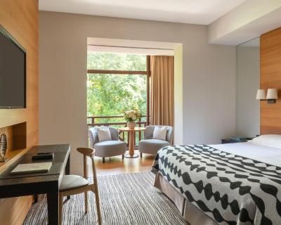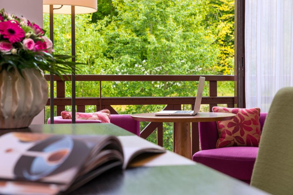 L’établissement 4 étoiles Hôtel Ermitage vous accueille dans des chambres et suites insonorisées avec une télévision à écran plat et une connexion Wi-Fi gratuite. La plupart possèdent une loggia ou un balcon offrant une vue sur le lac du grand parc.