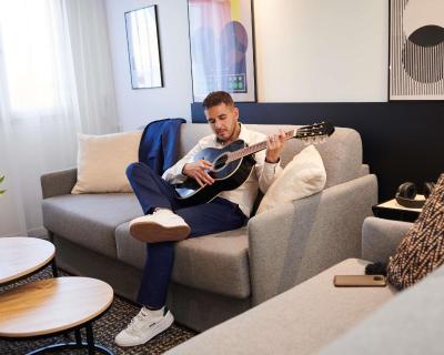 Mesdames et Messieurs, votre capitaine, Pierre Paroux, vous parle ! Toute l'équipe et moi sommes heureux de vous accueillir à bord de l'ibis Saint-Nazaire Trignac pour votre aventure professionnelle ou personnelle ! Vous trouverez à bord une multitude d'activités pour rendre votre voyage agréable, comme des concerts, des cours de sport et les plus grands matchs à voir dans notre salon, où les repas et les boissons sont disponibles à toute heure. "Bienvenue à bord !