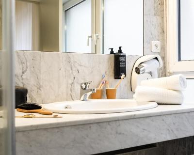Il propose des chambres élégantes et contemporaines bénéficiant d'une vue sur un jardin fleuri ou sur les cours intérieures de l'hôtel. Elles disposent toutes d'une télévision à écran plat et d'une connexion Wi-Fi, ainsi que d'une salle de bains privative pourvue d'une douche ou d'une baignoire.