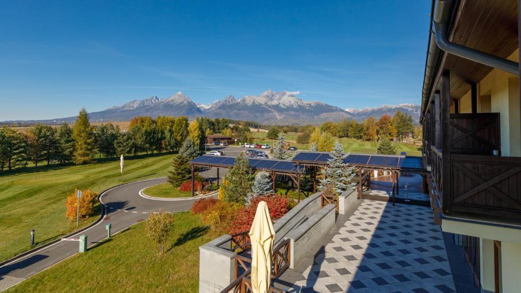 Le restaurant propose une délicieuse cuisine slovaque et internationale ainsi que des célébrations familiales et des événements d'entreprise. Détendez-vous dans le bar du hall avec sa cheminée et profitez de la vue sur les Hautes Tatras et le parcours de golf. Vous trouverez des terrasses sur les deux côtés du bar du hall avec des sièges confortables au soleil.