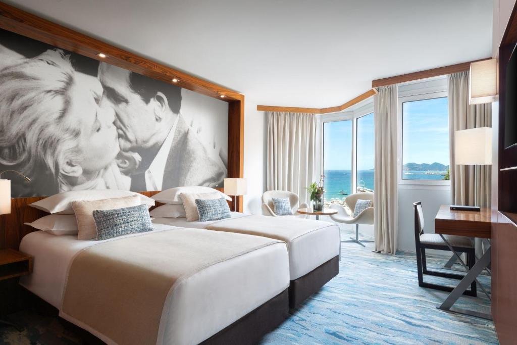 Les hébergements du JW Marriott Cannes allient des nuances crème et chocolat, sur le thème du Festival du Film. Chaque chambre dispose d'une télévision par satellite à écran LCD et certaines possèdent un balcon offrant une vue sur la baie et les îles de Lérins.