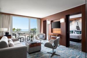 Le JW Marriott Cannes se trouve à Cannes, sur le boulevard de la Croisette, à seulement 50 mètres de la plage. Cet hôtel 5 étoiles dispose d'une piscine sur le toit-terrasse, d'une plage privée partenaire, d'un casino et d'un centre commercial.