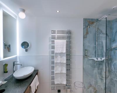 Le vaste espace sauna comprend un sanarium (sauna aux herbes), un sauna finlandais Aquaviva, un sauna chaud, une fontaine de glace et un bain turc avec un ciel étoilé artificiel.