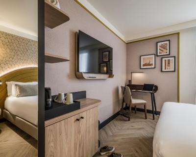 Guest rooms at the Mercure are spacious and feature satellite TV with Canal+. The en suite bathrooms are equipped with modern amenities such as a multi-jet shower.