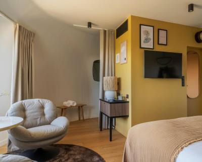L’établissement L'EssenCiel vous accueille à Piré-sur-Seiche, à 24 km de ce lieu d’intérêt : La Poterie Metro Station, Rennes. Il comprend un jardin, un salon commun, une terrasse et un parking privé gratuit. Cet hôtel 4 étoiles propose une connexion Wi-Fi gratuite, un service d'étage et une réception ouverte 24h/24. Vous pourrez profiter d'un restaurant ainsi que du spa et centre de bien-être sur place avec sa piscine intérieure, son sauna et son bain à remous.