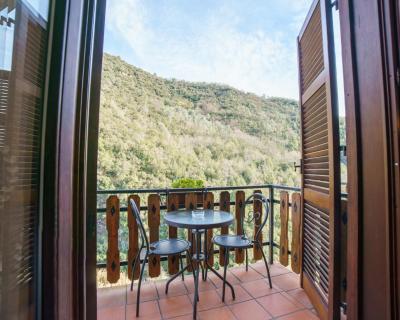 La plupart des chambres possède un balcon offrant une vue panoramique sur la rivière Barbaira et le village médiéval de Rocchetta Nervina.