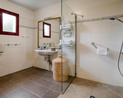 Cette chambre double dispose d'une terrasse avec vue sur le jardin ainsi que d'une salle de bains privative avec une douche. Vous profiterez également d'un minibar et d'une machine à café. Ce logement comporte 1 lit.