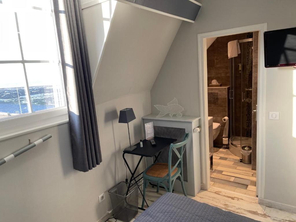 Le restaurant comprend une terrasse au bord de la mer et sert une cuisine traditionnelle française, spécialisée dans les fruits de mer frais.