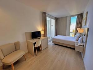 Installé en bord de mer, dans le centre-ville de Roses, l'hôtel Marina propose un accès gratuit à la salle de sport et à la piscine sur le toit avec jets d'hydromassage, ouverte en été.