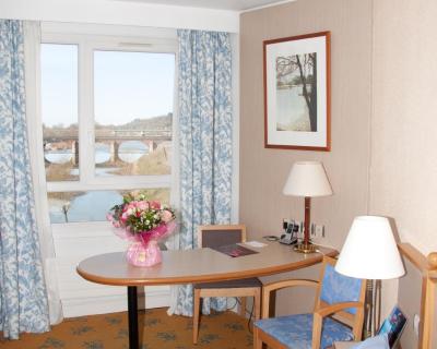Les chambres spacieuses et bien aménagées de cet hôtel Mercure sont équipées d'une salle de bains privative. Certaines offrent une vue sur la Loire.