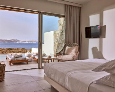 L’Hotel Milos Sea Resort est un établissement de style cycladique proposant des chambres et des suites dotées d’une connexion Wi-Fi gratuite à 150 mètres de la plage.