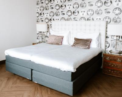 The hotel rooms are unique in their shape and colours. All rooms have high ceilings and are spacious. There is air conditioning and free Wi-FI available.