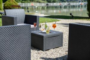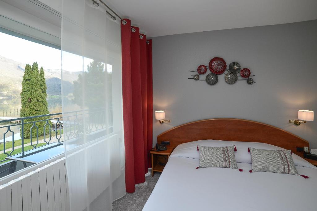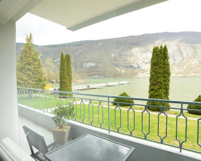Les chambres lumineuses et spacieuses sont décorées dans un style sobre et élégant. Offrant une vue sur le lac, elles sont dotées d'une salle de bains privative, d'une télévision et d'un balcon.