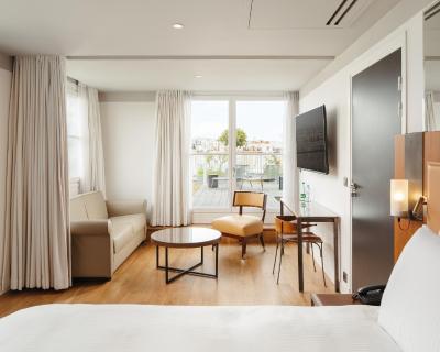 Chaque chambre possède une télévision à écran plat, une station d’accueil iHome, une machine à café Nespresso, une bouilloire et un coffre-fort. Certaines suites disposent d'une terrasse privative donnant sur les toits de Paris.