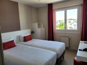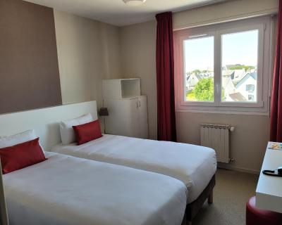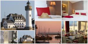Les chambres du Port Haliguen Hotel présentent une décoration moderne et sont équipées d'une télévision à écran plat. Chaque chambre dispose d'une salle de bains privative et offre une vue sur la mer ou sur les jardins voisins. L'hôtel ne possède pas d'ascenseur.