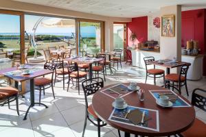 Un petit-déjeuner continental est servi tous les matins. Le restaurant sert une cuisine de brasserie que vous pourrez déguster sur la terrasse spacieuse donnant sur l'océan. Après le dîner, vous pourrez vous détendre avec un verre au bar Le Breiz.