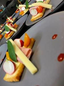 Les repas et le petit-déjeuner sont servis sur le patio d'été ou dans la salle à manger.