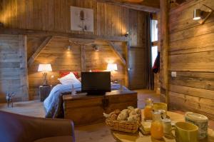 Les chambres de La Bouitte présentent une décoration rustique avec des poutres en bois, un balcon privé et une vue sur la montagne. Elles sont toutes équipées d'une connexion Wi-Fi gratuite et d'une télévision par satellite à écran plat.