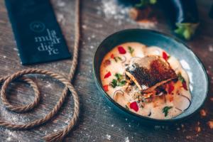 Le matin, vous pourrez déguster un petit-déjeuner sur place et savourer des boissons au bar. Au restaurant, vous pourrez déguster une cuisine bistronomique préparée par le chef Benjamin Revel.
