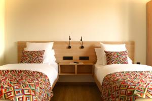 The hotel offers rooms with bathroom, desk, television, fridge, air conditioning and soundproofing.