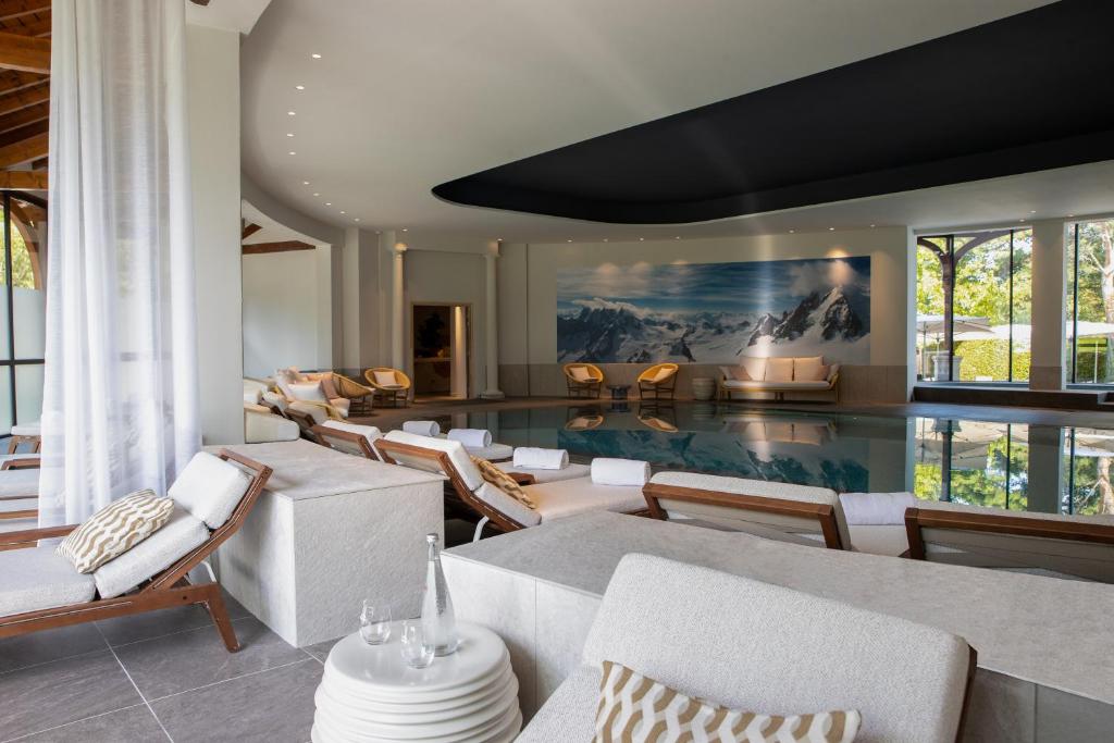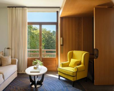 Situé au cœur d'un domaine de 19 hectares planté d'arbres centenaires, ce grand hôtel Belle Époque est un havre de paix immergé dans la nature. Vous trouverez sur son domaine des sanctuaires d'oiseaux, des ruches et un grand jardin potager de 3 000 m² dont les produits, enrichis par le passage des saisons, figurent au menu des restaurants gastronomiques Les Fresques et La Véranda, étoilés au guide Michelin, ainsi qu'au menu du brunch lorsque le temps le permet.